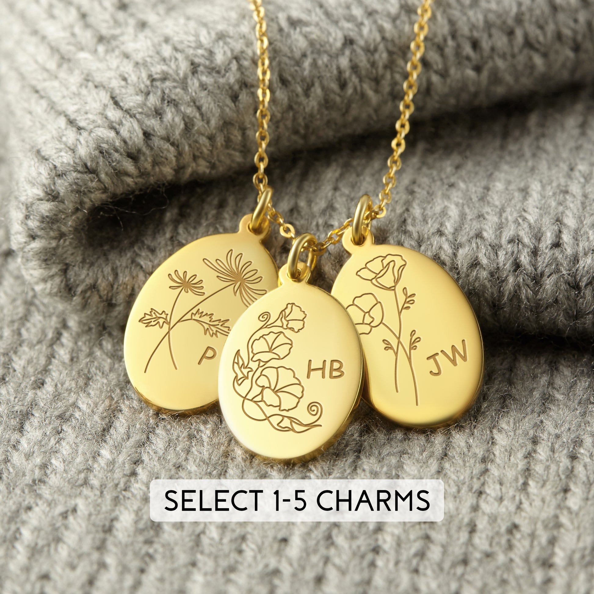 The birth month(s) and initial(s) - (max 1 birth flower and 1-2 initials per charm)