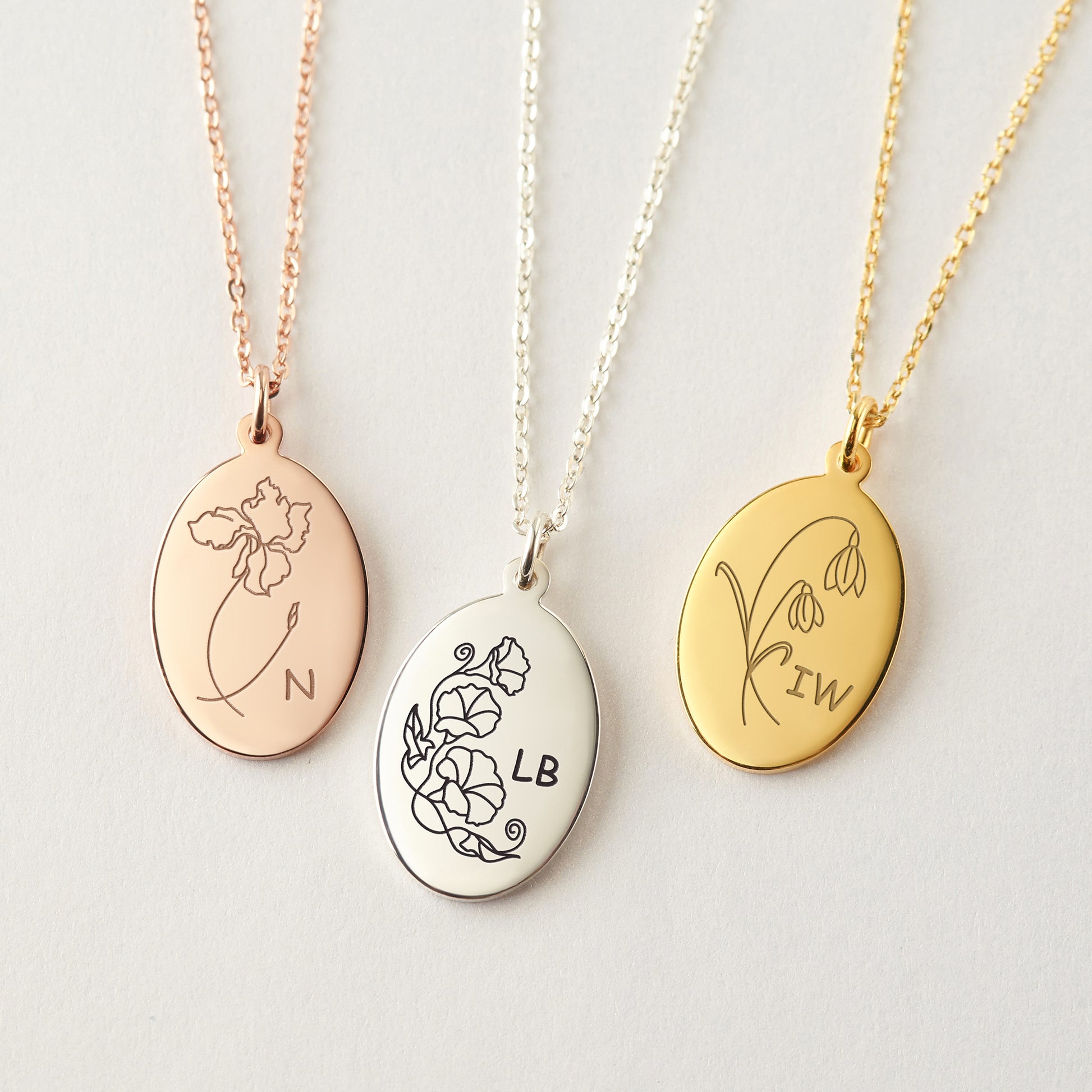 A wonderful and delicate piece of oval disc necklace is just the touch for your daily outfit. You can choose up to 5 discs with the option of gold, rose-gold or silver. You can also customize this birth month flower necklace with initials as it will look great as an individual or layering.