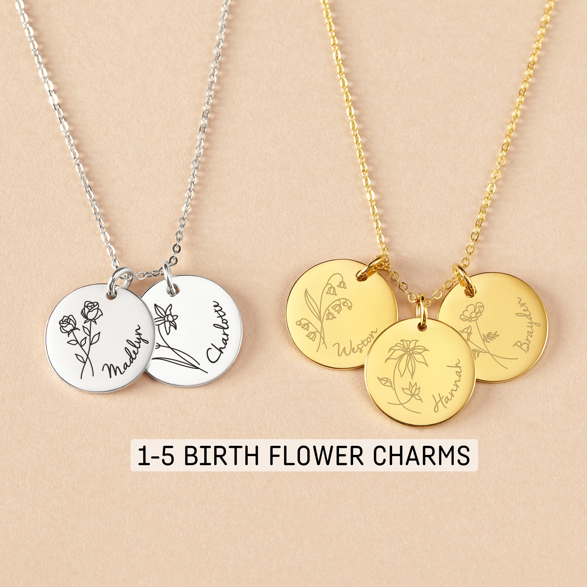 Keep it simple with this minimalistic piece of jewelry. Personalize it by engraving your kids's name and birth month flower on up to 5 discs with the option of silver, gold or rose-gold plated. This is a perfect gift for your loved one or simply just to treat yourself.