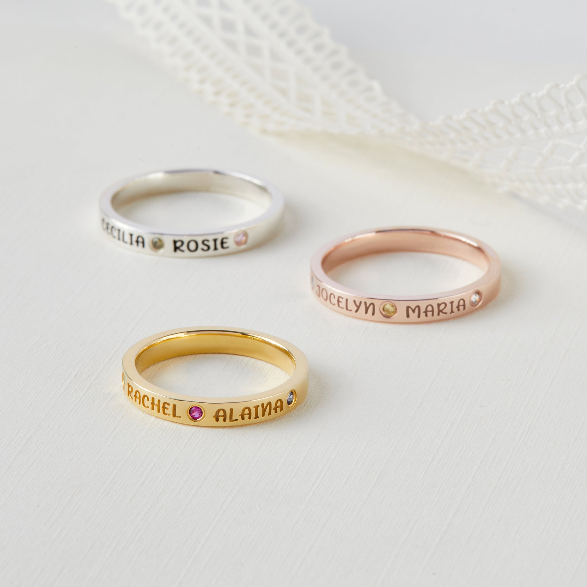 Make a unique piece of jewelry with this name ring with birthstones! You can list one or up to 5 names of your kids. This will be a perfect gift for any mom or friend in your life on special occasions.